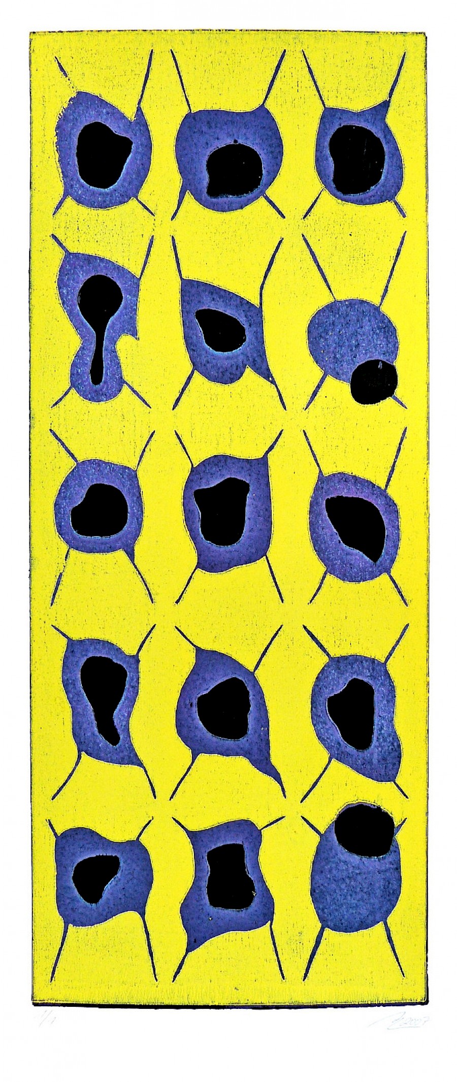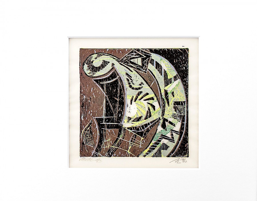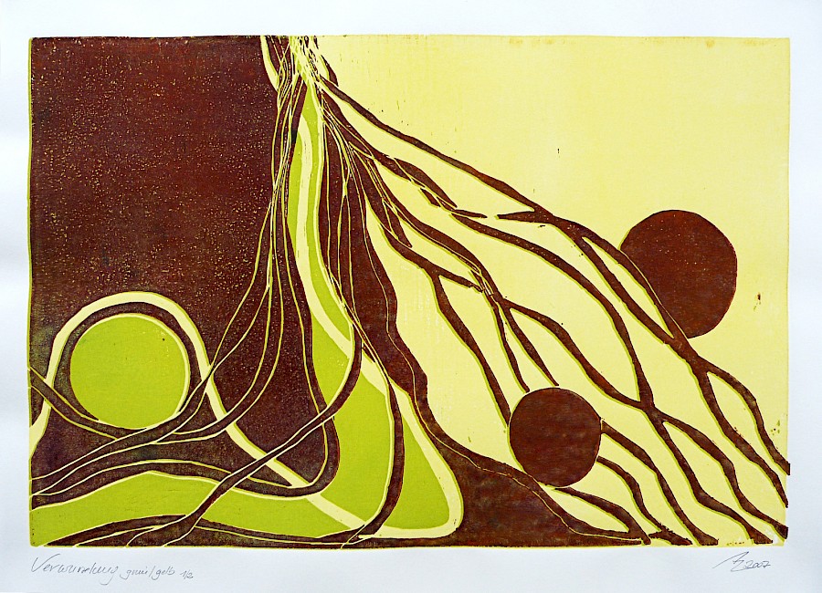 Verwurzelung | grün gelb | 1/2 | Dreifarbenholzdruck | 60 x 40cm