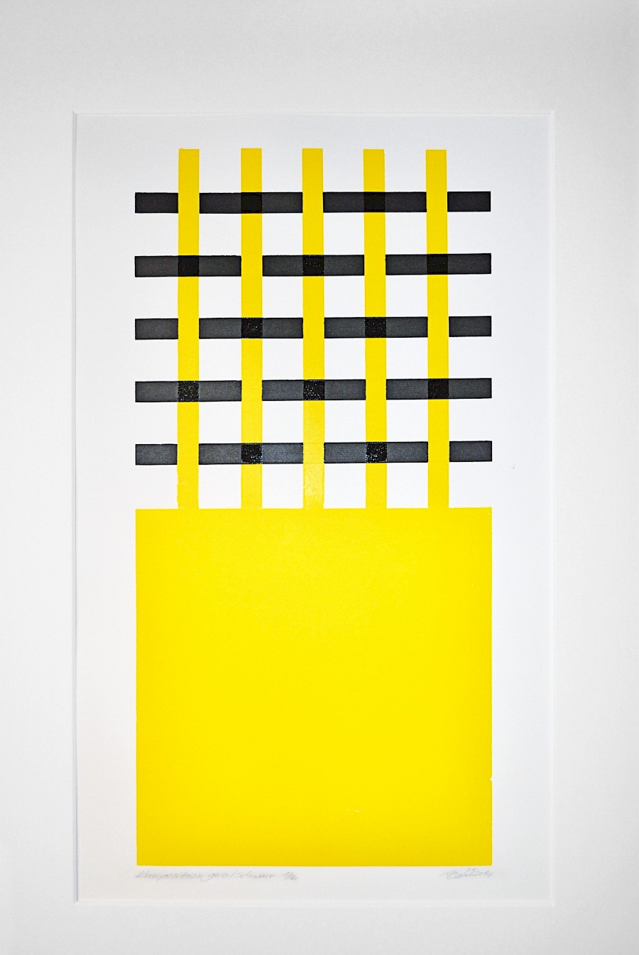 Komposition gelb/schwarz | 1/2 | Holzdruck | Öl auf Papier |38 x 76cm