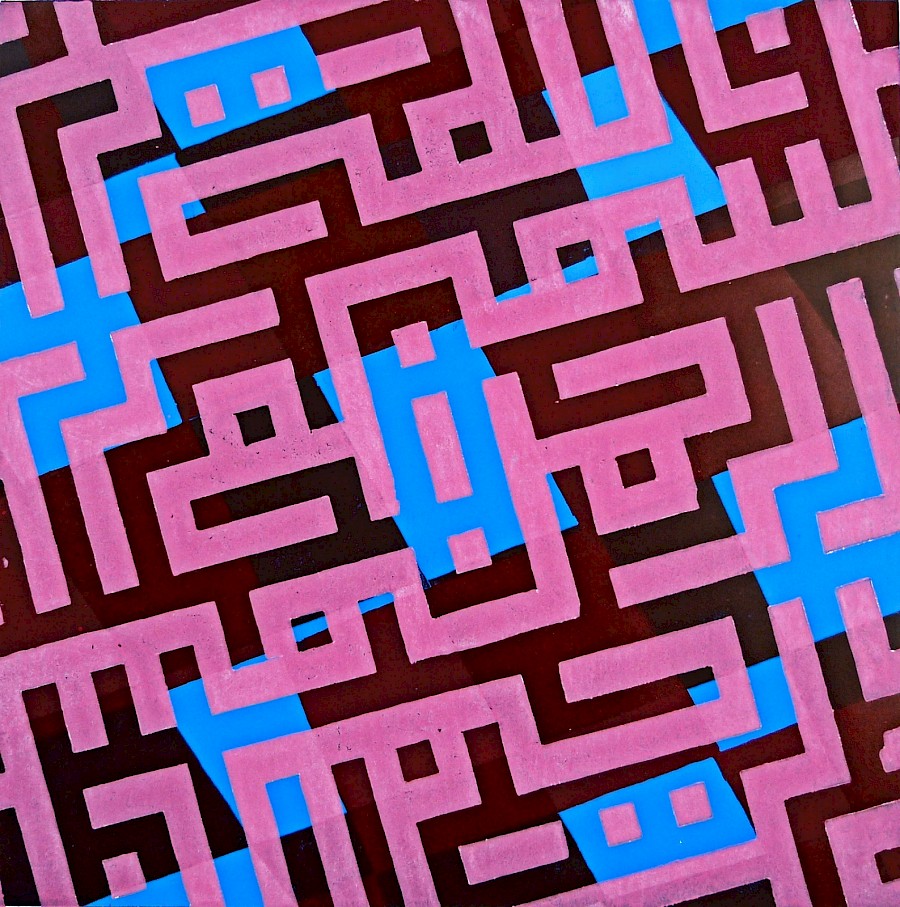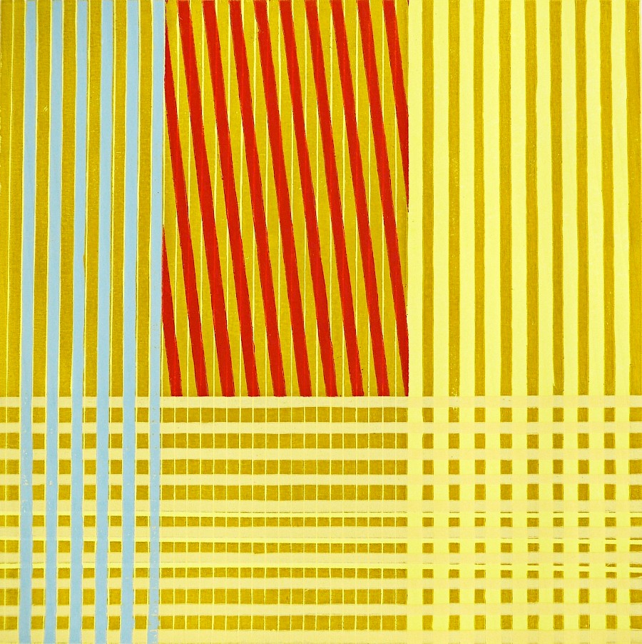 Drei-Farben-Holzdruck | Buchdrucker-Ölfarbe auf Leinwand | 50 x 50cm