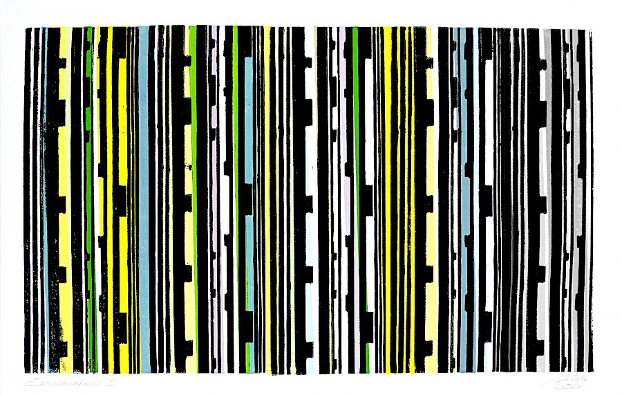 Zwischenräume 3 | Mehrfarben-Holzdruck auf Kupferdruckpapier | 44 x 74cm
